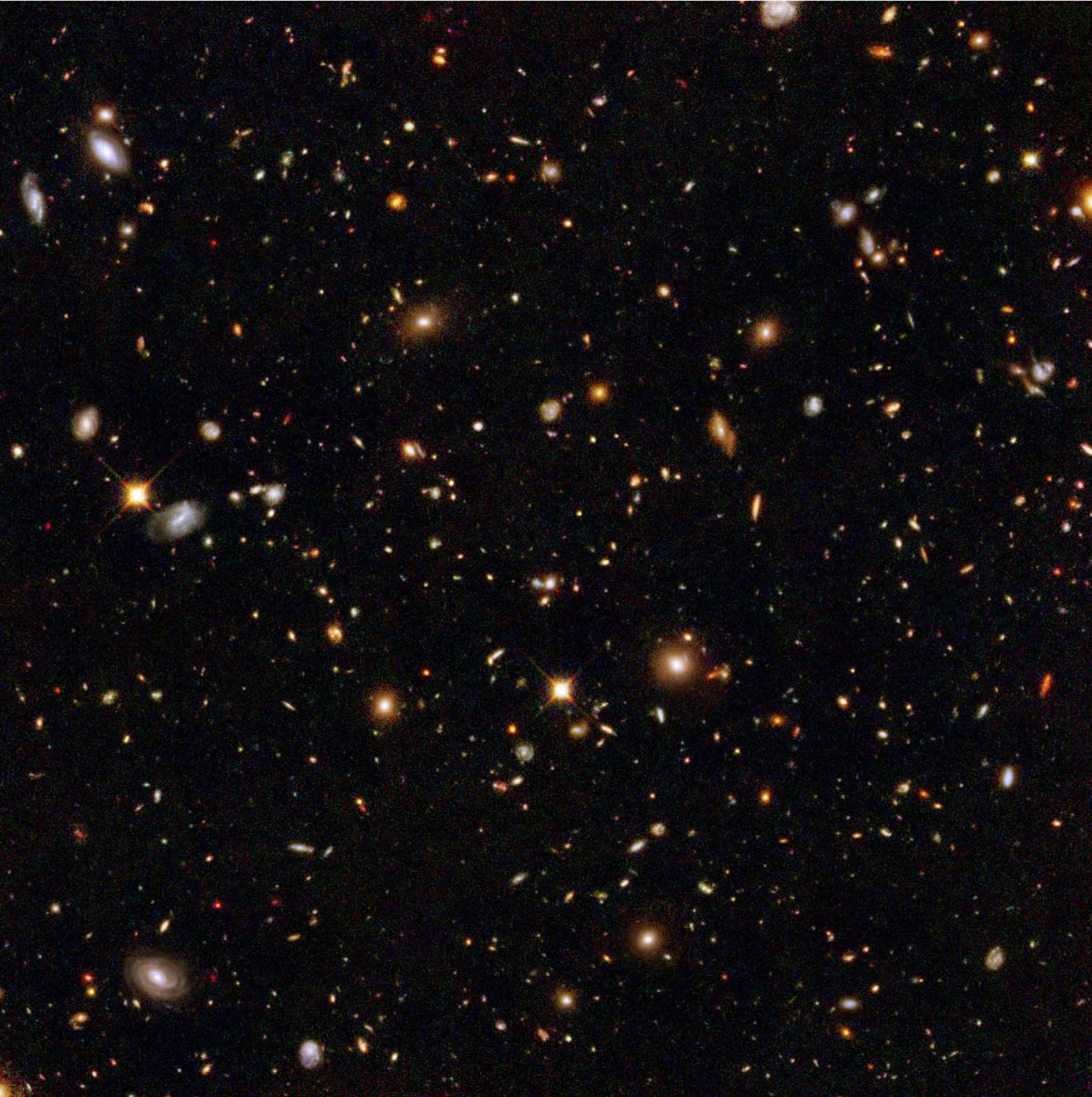 Color images can then be randomly created and populated with these simulated galaxies with the desired parameters for any hypothetical ground- or space-based survey, including field size, exposure time, telescope mirror size, pixel resolution, field star density, and a variety of detector noise sources. Also crucial for weak lensing tests is the ability to change the point spread function (the way that point sources such as stars become smeared out by various effects) and overall shearing of the images.